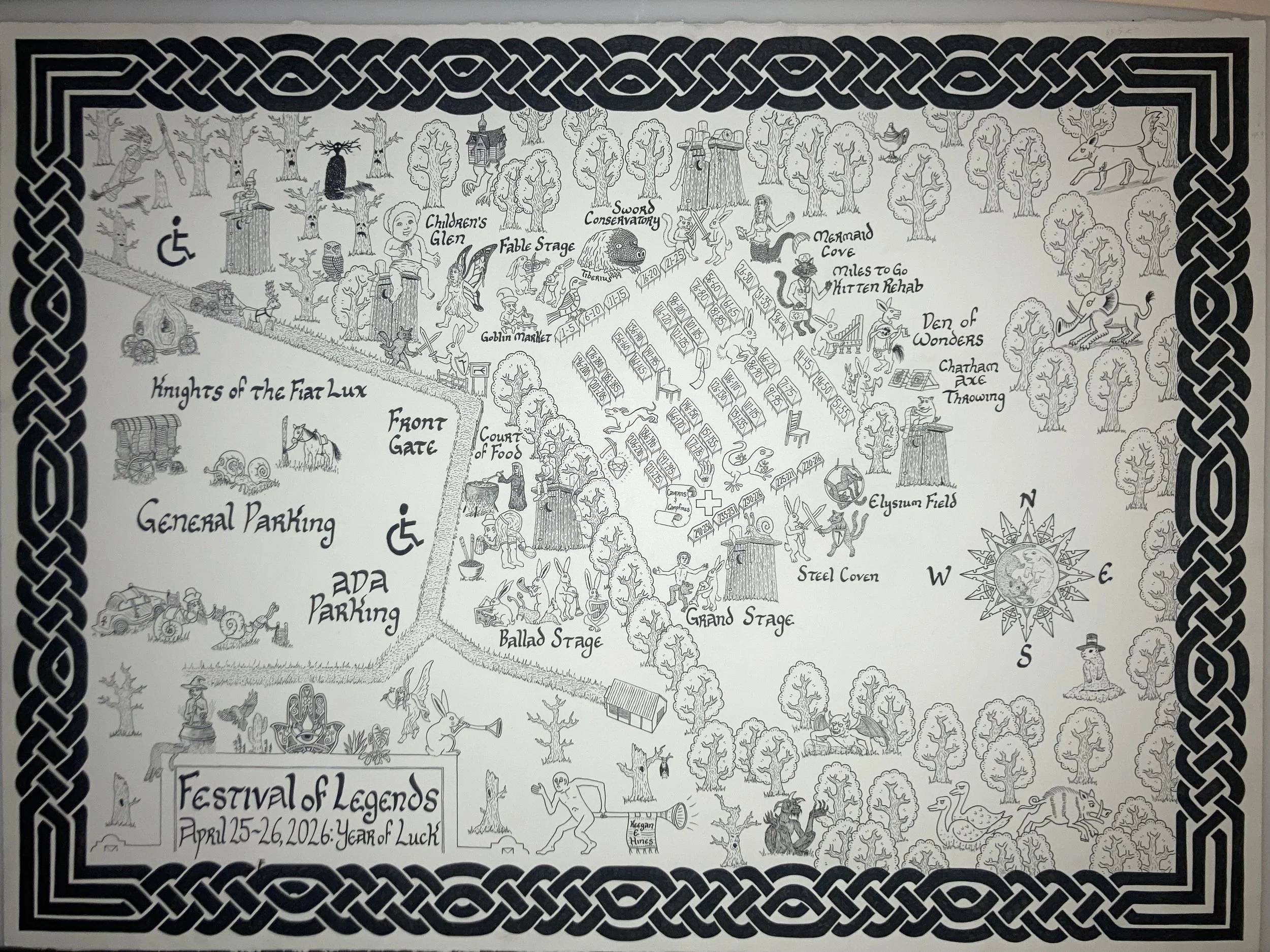 I’ve recently completed the site map for this year’s Festival of Legends (April 25-26th at Sugg Farm, NC). ‘Tis replete with creatures symbolizing either good or ill fortune. We’re looking forward to showcasing our maps (including some gilded editions of Beregond’s Map of Middle Earth) at the market - come find us in our medieval-style canvas tent. Come one, come all!