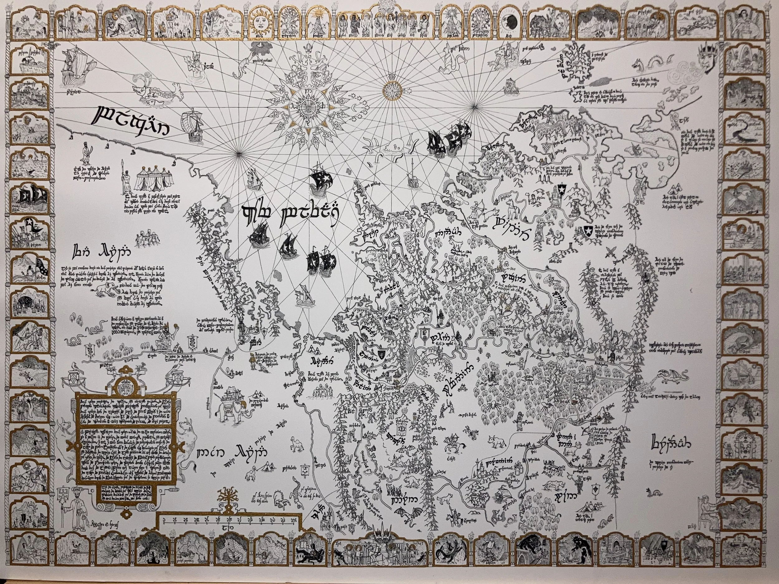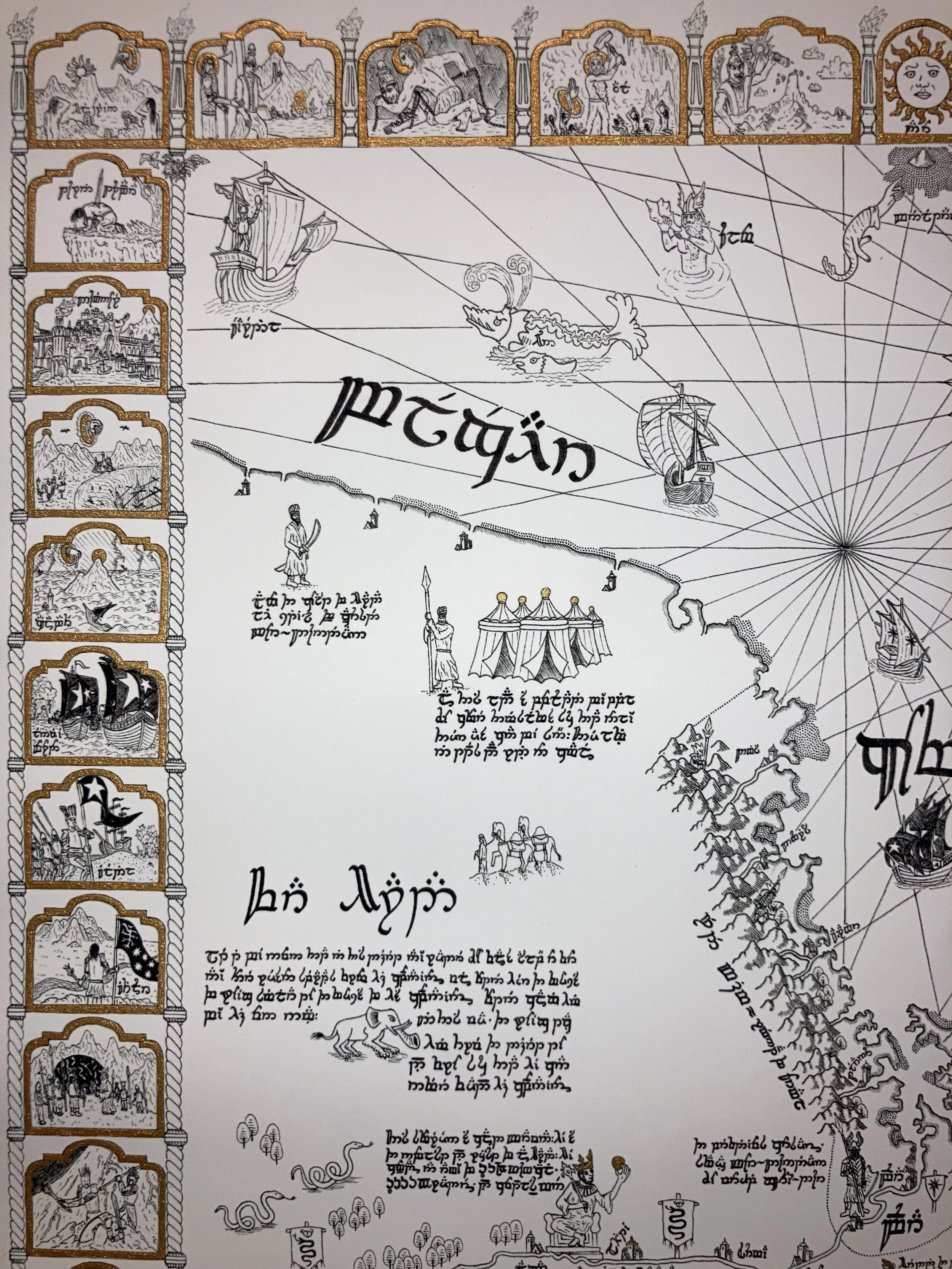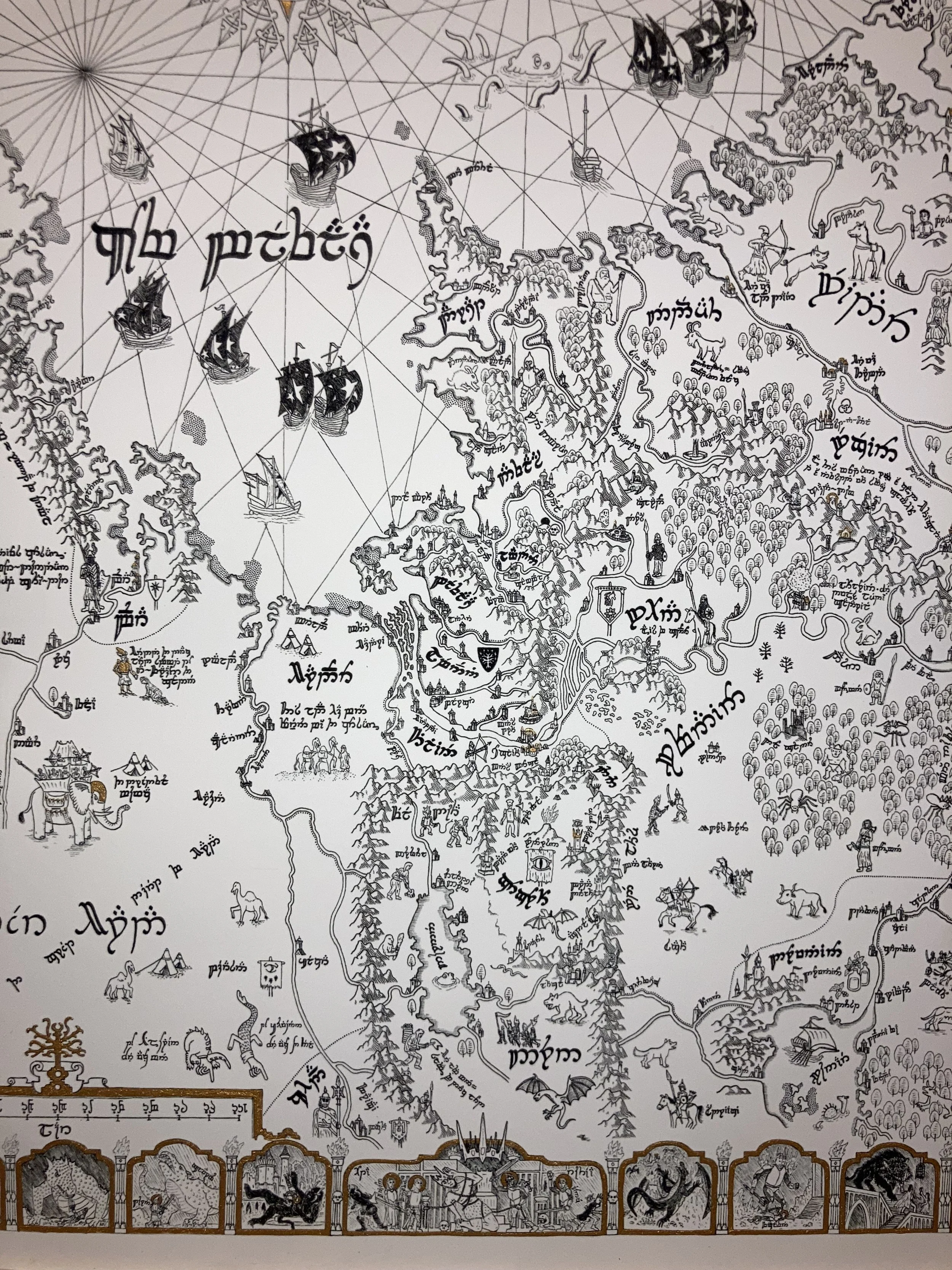 As previously discussed, I got around to gilding a few prints of Beregond’s Map. I used dip pens and Windsor & Newton gold calligraphy ink to do so. It took me about 2-3 hours to apply the ink to each print. I’m happy with how they turned out - I think the ink has a nice metallic sheen and really makes the maps pop as well as imparting a more medieval feel to the work, highlighting the most important or sacred elements of the map.